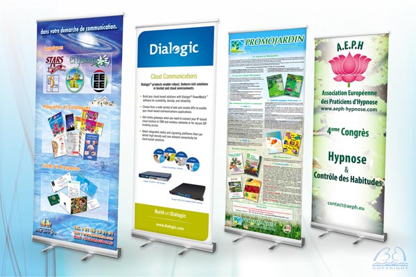 Les kakémonos et Rolls'ups sont des outils indispensables pour communiquer et accompagnez vos stands lors de salons ou vos locaux et bureaux.