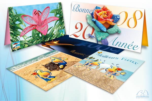 Idéales pour transmettre ses vœux. Elles peuvent être personnalisées avec un timbre particulier ce qui les rend d'autant plus originales. L'envoi de cartes de vœux papier reste de nos jours une tradition lourde de signification et incontournable... Blu'Bahia crée aussi des cartes de vœux virtuelles. Celles-ci obéissent au même principe que les cartes de vœux papiers. Les personnalisations les plus poussées offrent la possibilité de créer des cartes animées pouvant contenir du texte, des images, du son ou de la vidéo.Il faut noter que les cartes de vœux virtuelles participent à préserver l'écologie de la planète...
