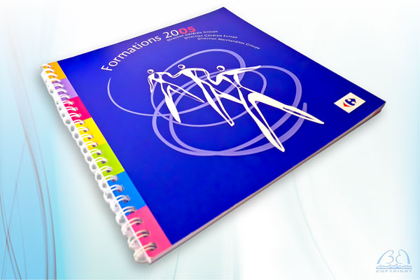 La reliure est une procédé d’assemblage de feuilles d’un document. Blu'Bahia utilise des Reliures Wire’o avec perforation et peigne métallique fixe ou plastique.